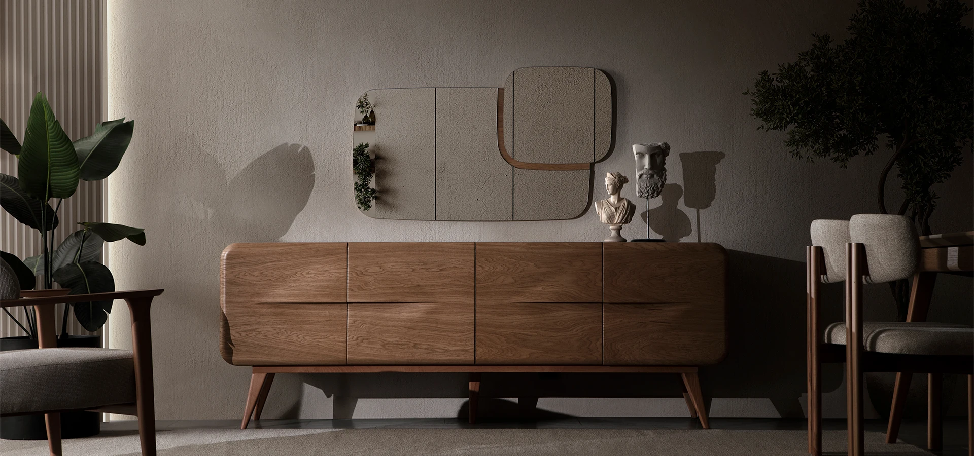 Malzeme ve doku, yalnızca estetik değil; karakter belirleyen bir seçimdir. Mobilya, burada bir nesne değil, sessiz bir sanat ifadesidir.