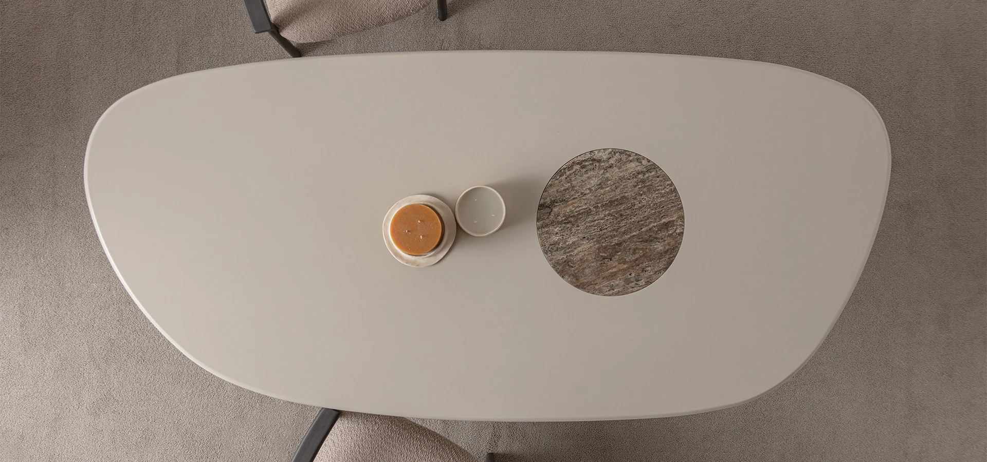 Işığın yüzeye düşüşü, doğanın kusurlu dengesi ve dinginlik arayışı, tasarımın başlangıç noktasını oluşturur.